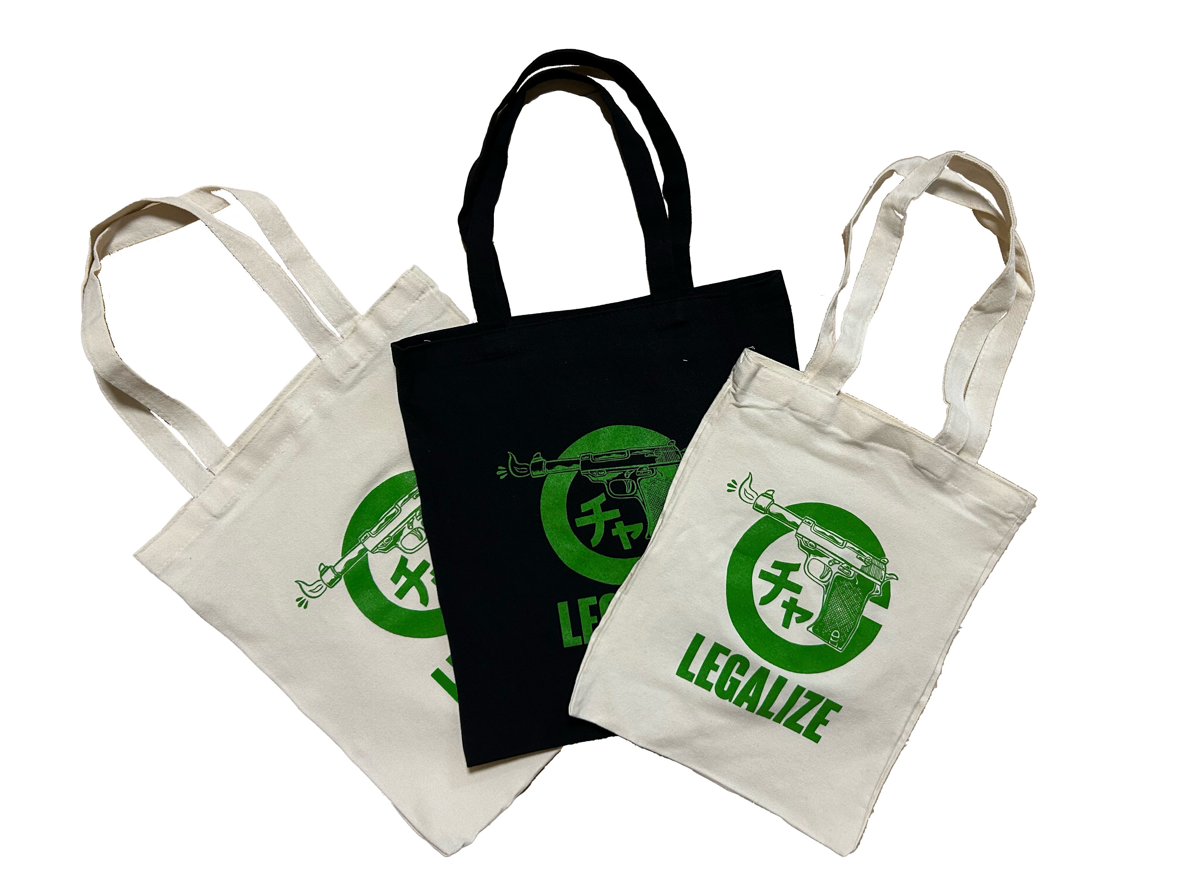 シンプルなキャンバス地にチャッカーズお馴染みのマークとメッセージがプリントされたトートバッグ(小)